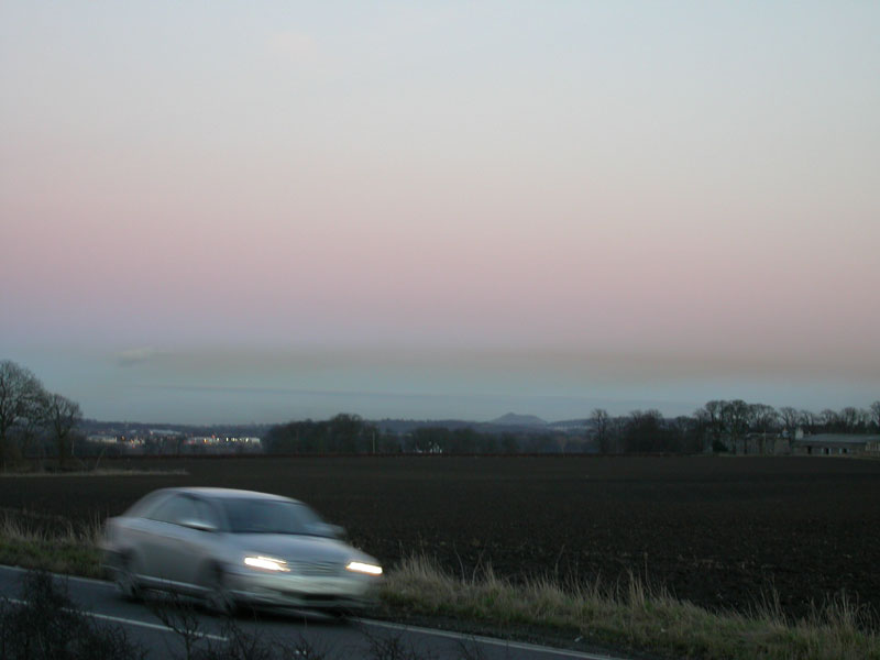 An effect called the "Belt of Venus". Visible opposite the sun before sunrise and after sunset it is a beautifully colourful projection of the Earth's shadow onto the sky; Feb 2004. |