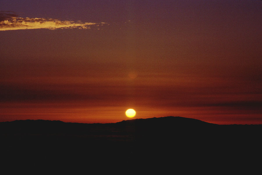 The sun setting over La Palma, Canary Islands, August 2002. |
